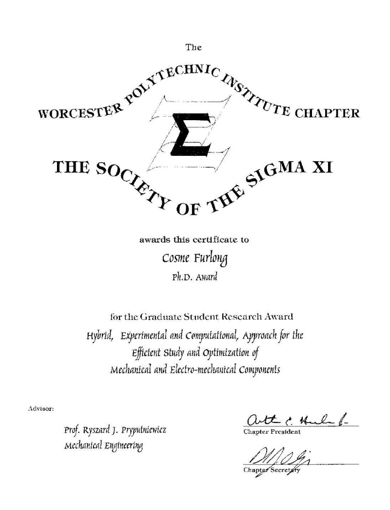 outstanding advising in Mechanical Engineering, WPI, 2008.