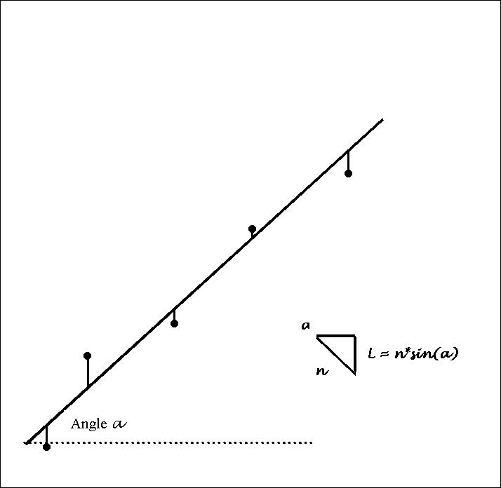 divided by the sine of the angle between the line of fit and the horizontal: