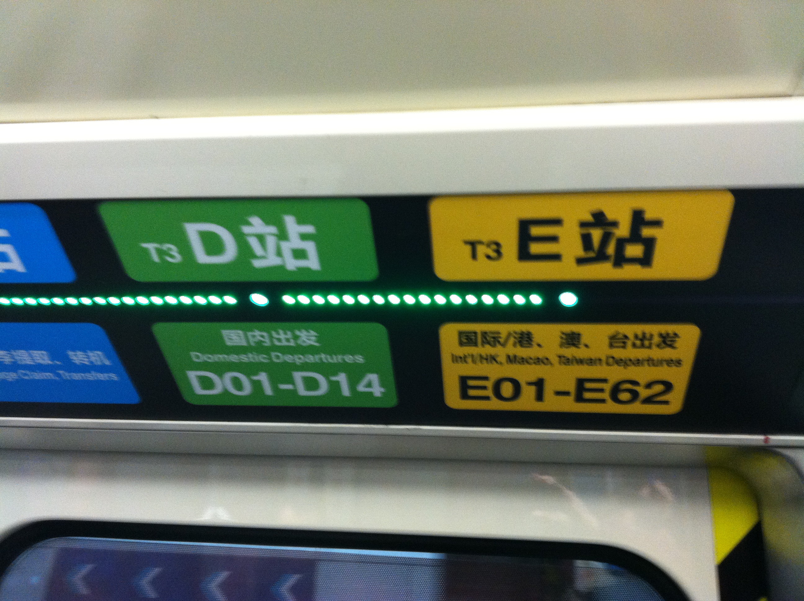3. Beijing airport subway train. Notice "domestic" departures in international terminal.