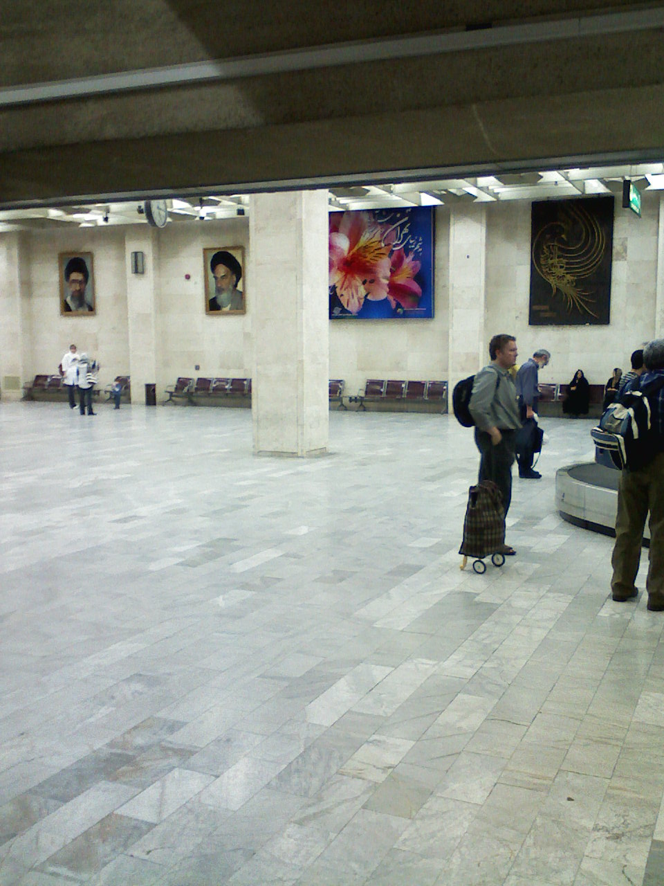 Murals pay homage at Mehrabad Airport. Outside, a taxi just for women, by women.