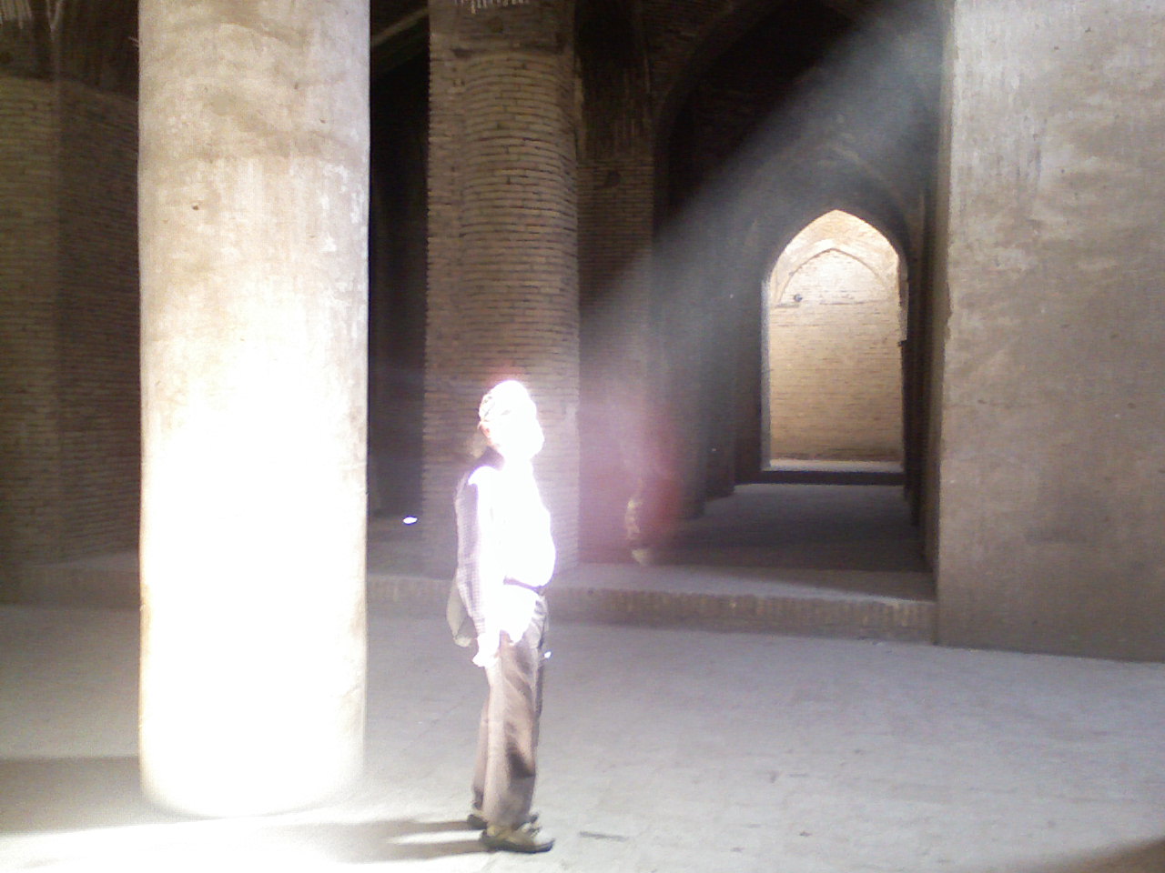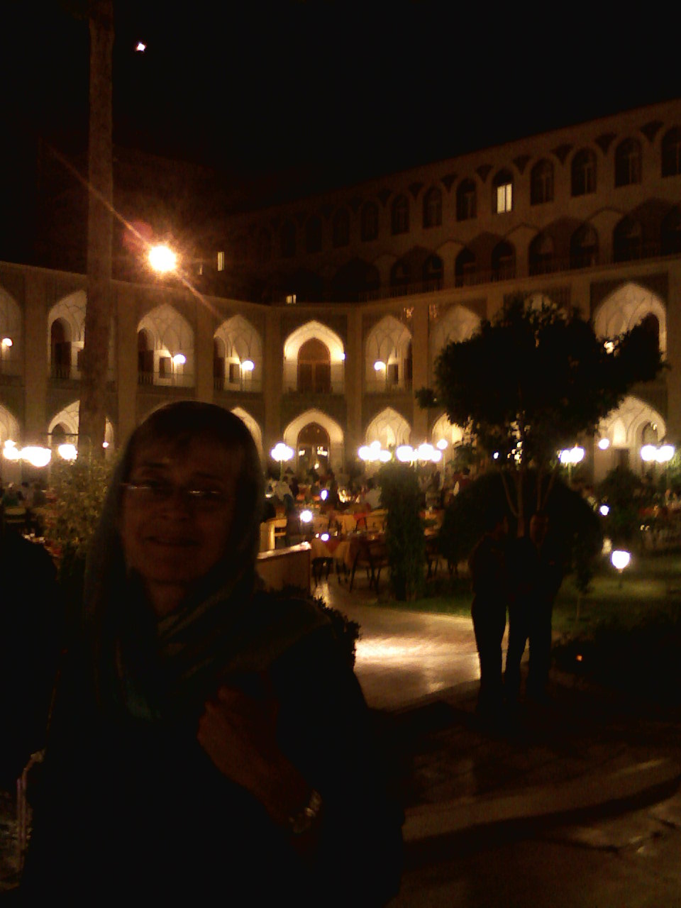 Helene in the courtyard of a very fancy hotel in Isfahan