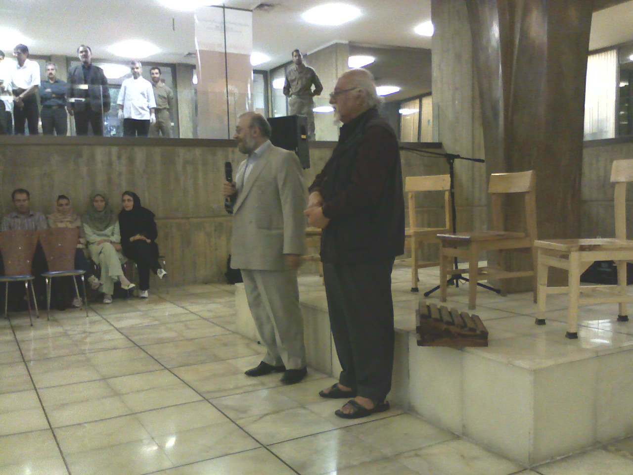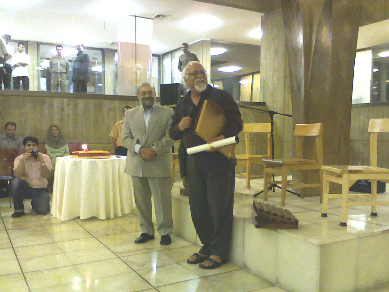 Above: Reza Khoshrovshahi being recognized by Dr. Larijani, Institute Director and brother of the Speaker of the Iranian Parliament.