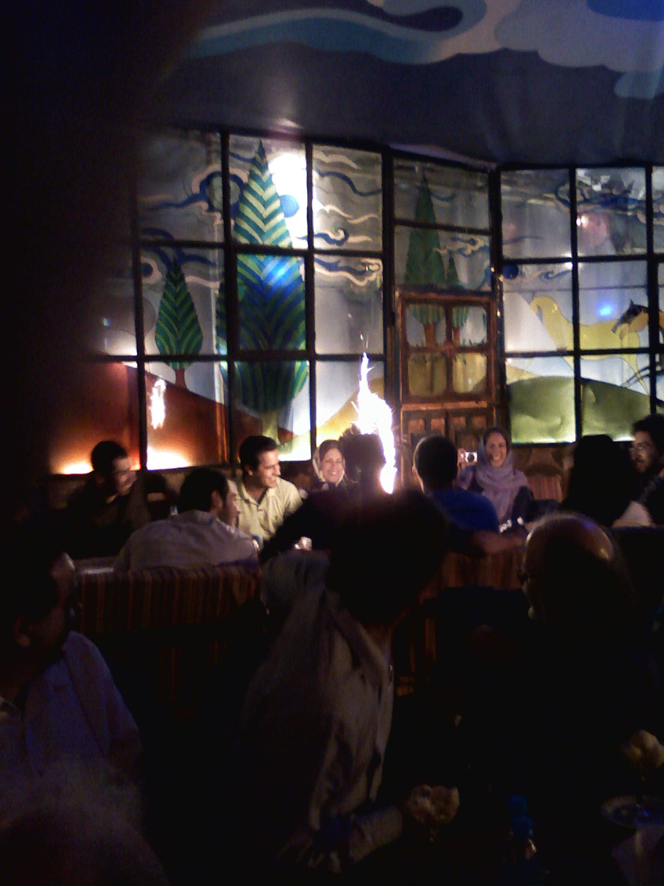 A very nice dinner in Tehran, in a traditional-styled restaurant with a tent roof: