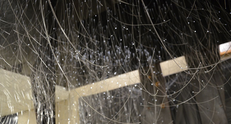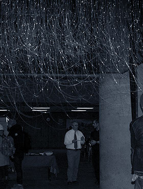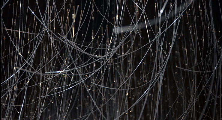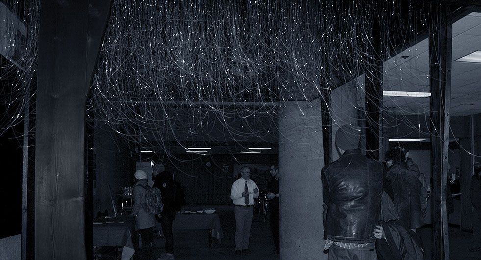 Fiber Optic elements represent 2,996 victims of the 9/11 attacks; a parametric design was used to find the positioning of the fibers. Position and length of the fiber optics were determined by variables such as Name, Age, Year and Place of birth of the victims. In other words, we have 2,996 fiber optic elements with different lengths each identifying a unique victim. Reflections are designed to be a conceptual symbol of the everlasting vernal presence of the victims in our everyday life.