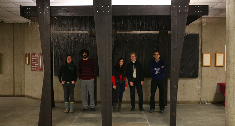 The dimensions of the main structure is 9 by 14 feet obtained from the date of 9/11/2001. The ratio of the structure is also close to golden rectangle ratio. Seven columns which represent the four flights (flight 11, flight 175, flight 77 and flight 93) and the three buildings (Twin Towers and the Pentagon) hold the intervention structure. The columns are positioned as to represent the chronological order of the events from 5:45 am to 6:42 pm on the day of 9/11.